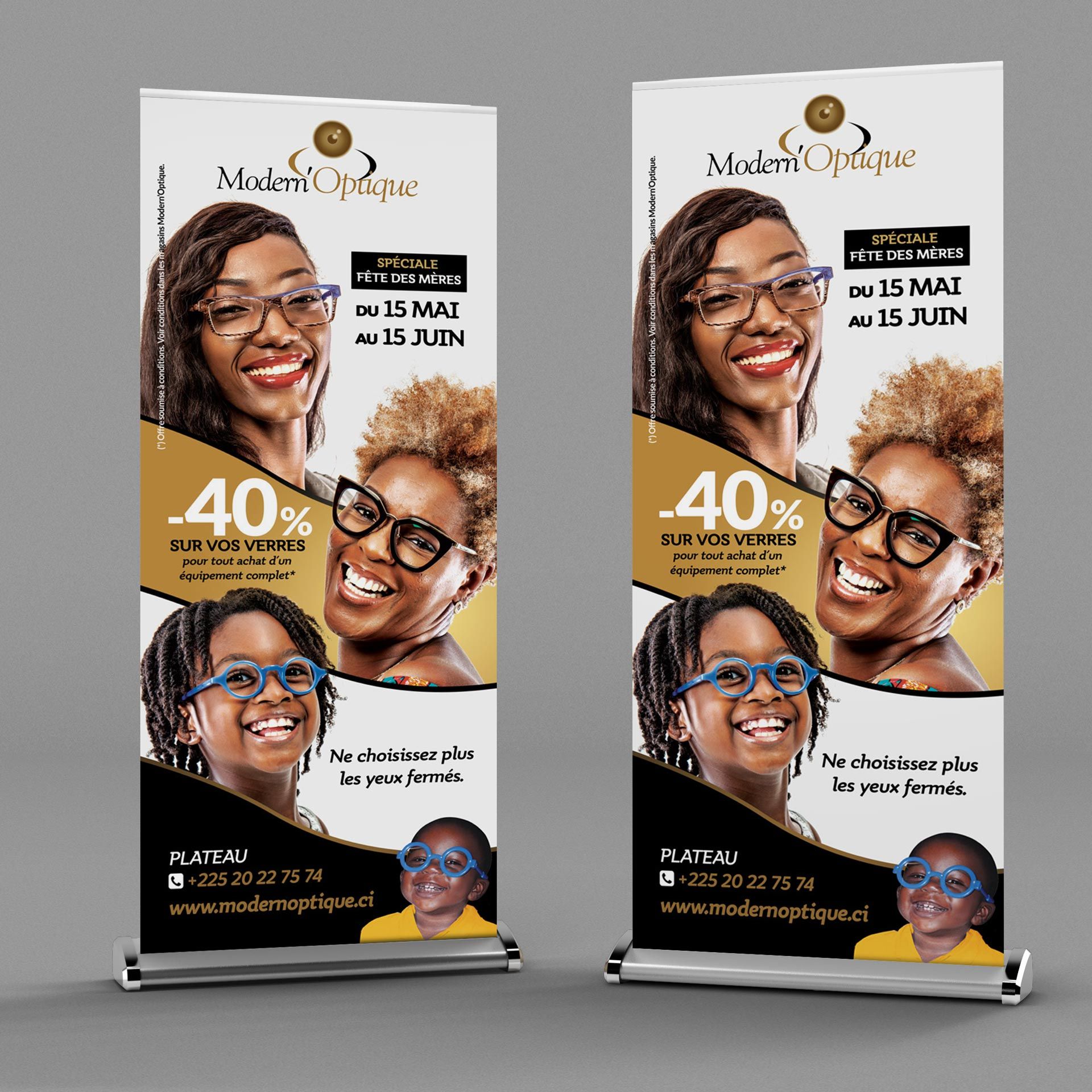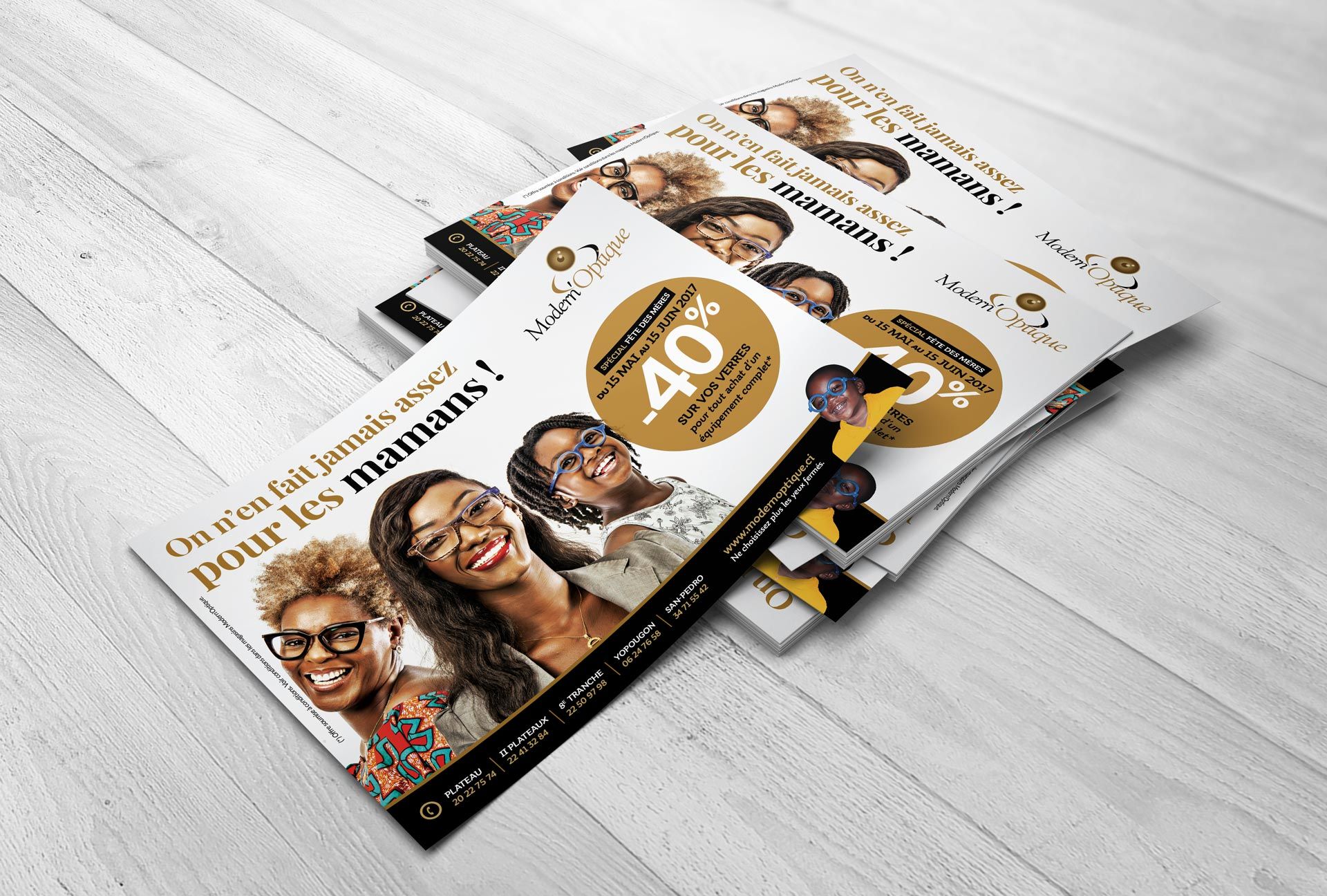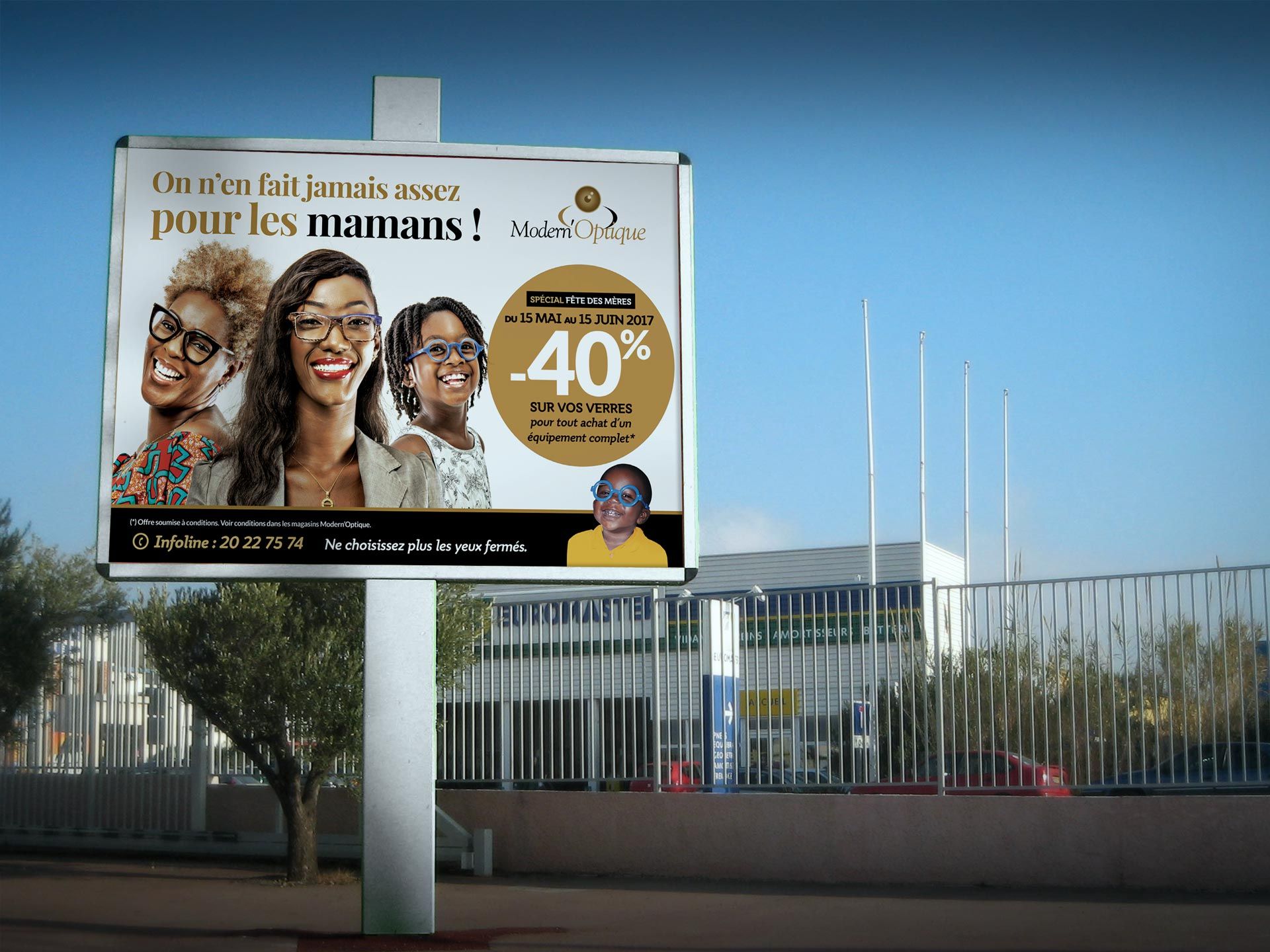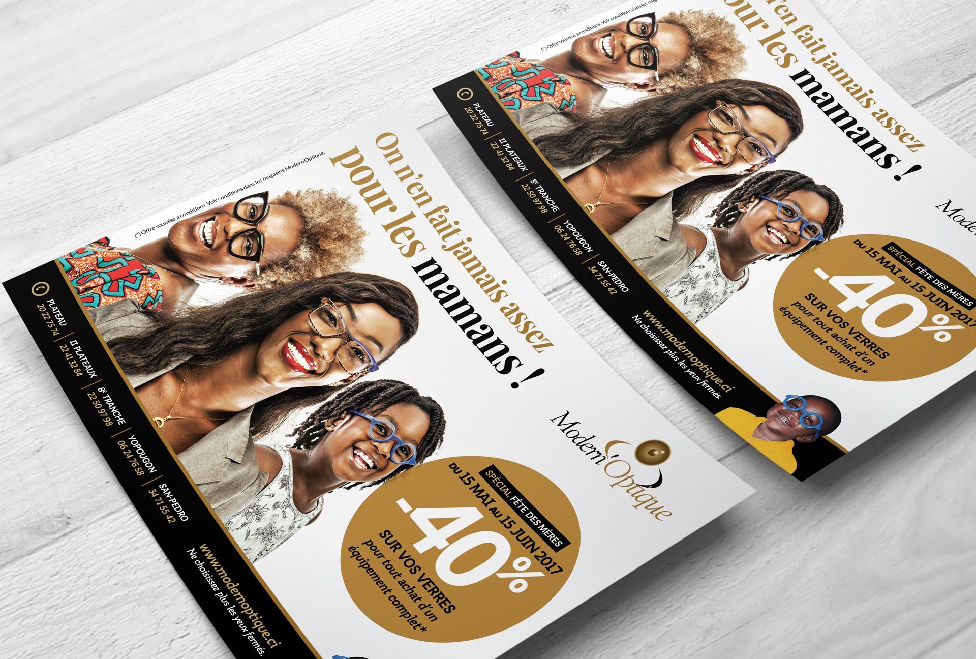 Pour la fête des mères, l'entreprise Modern'Optique spécialisée dans l'optique et la lunetterie m'a engagé pour la conception et la création du visuel de leur campagne offre spéciale. leur souhait un visuel plein de tendresse pour toucher emotionnellement leur cible familiale ou féminine.
